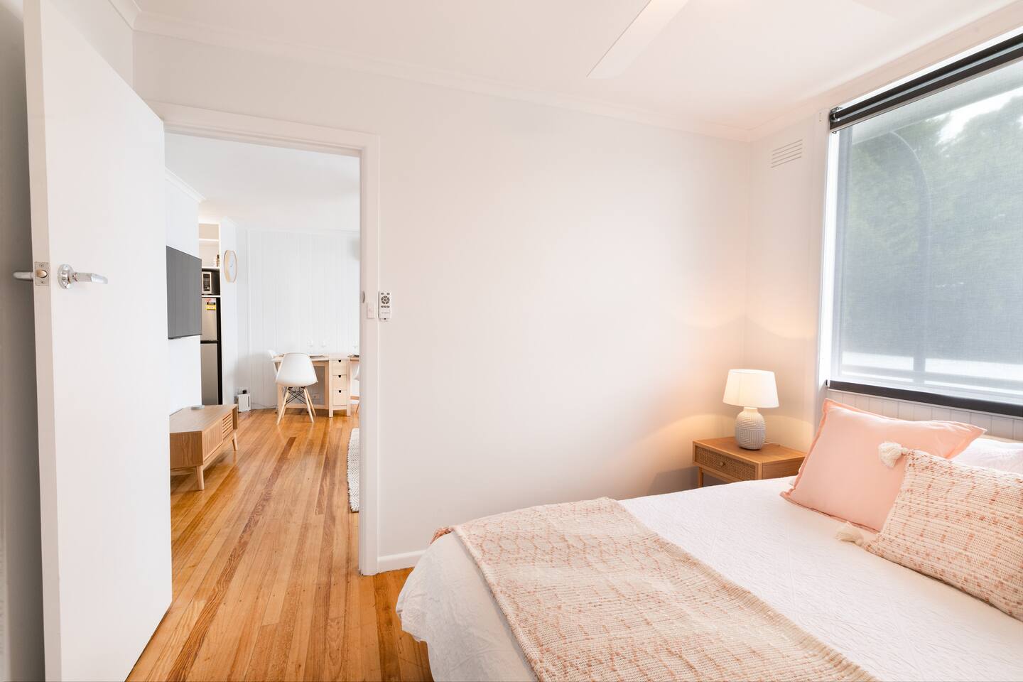 Immerse yourself in the tranquil ambiance of the ‘Orton Waves’ where the gentle sound of the ocean envelops you, creating the perfect coastal getaway. This idyllic apartment is perfectly positioned just a short 5-minute stroll from the beach, ensuring that the sand and surf are easily accessible whenever you desire. Situated in the heart of Ocean Grove, you'll find yourself within easy reach of the town's charming cafes, vibrant shops, and captivating local attractions. The quiet location of this oasis offers a peaceful retreat, making it the ideal choice for a relaxing vacation where you can unwind and rejuvenate in the serenity of the coastal environment. ‘Orton Waves’ offers two spacious bedrooms, each thoughtfully furnished with a comfortable queen bed, complete with fresh linen and all the bedroom comforts you need for a restful night's sleep. The interior of the apartment has been lovingly renovated, showcasing a coastal charm that sets the stage for a truly relaxing experience. The newly refurbished bathroom and kitchen bring a modern touch to your seaside retreat, making your stay both comfortable and convenient. After a day of seaside adventures, you can retreat to the spacious living area, where you can unwind and reflect on the day's escapades in a tranquil setting or simply Netflix and chill. You'll appreciate the convenience of your designated off-street single-car park, ensuring your vehicle is safe and secure during your stay.